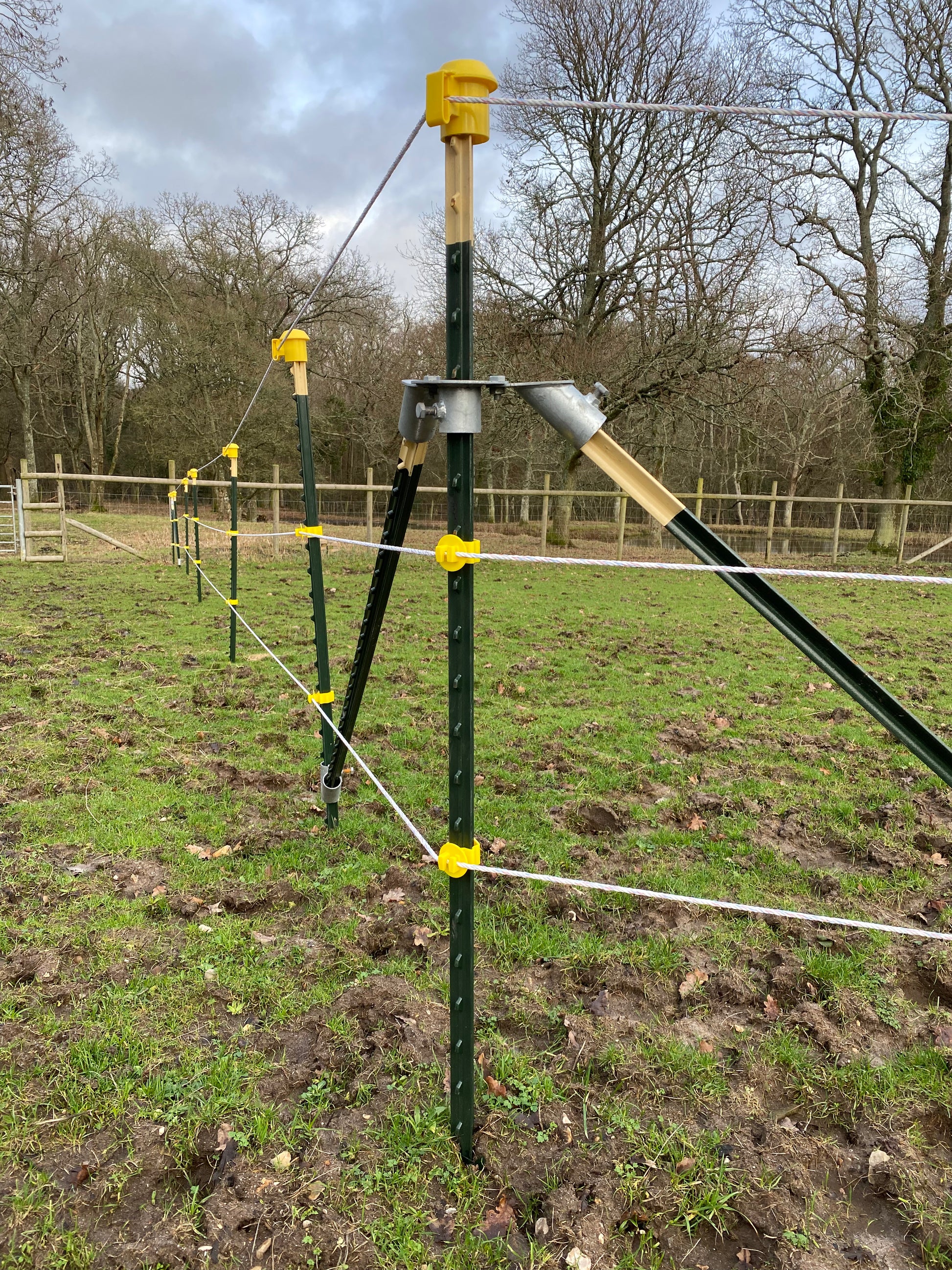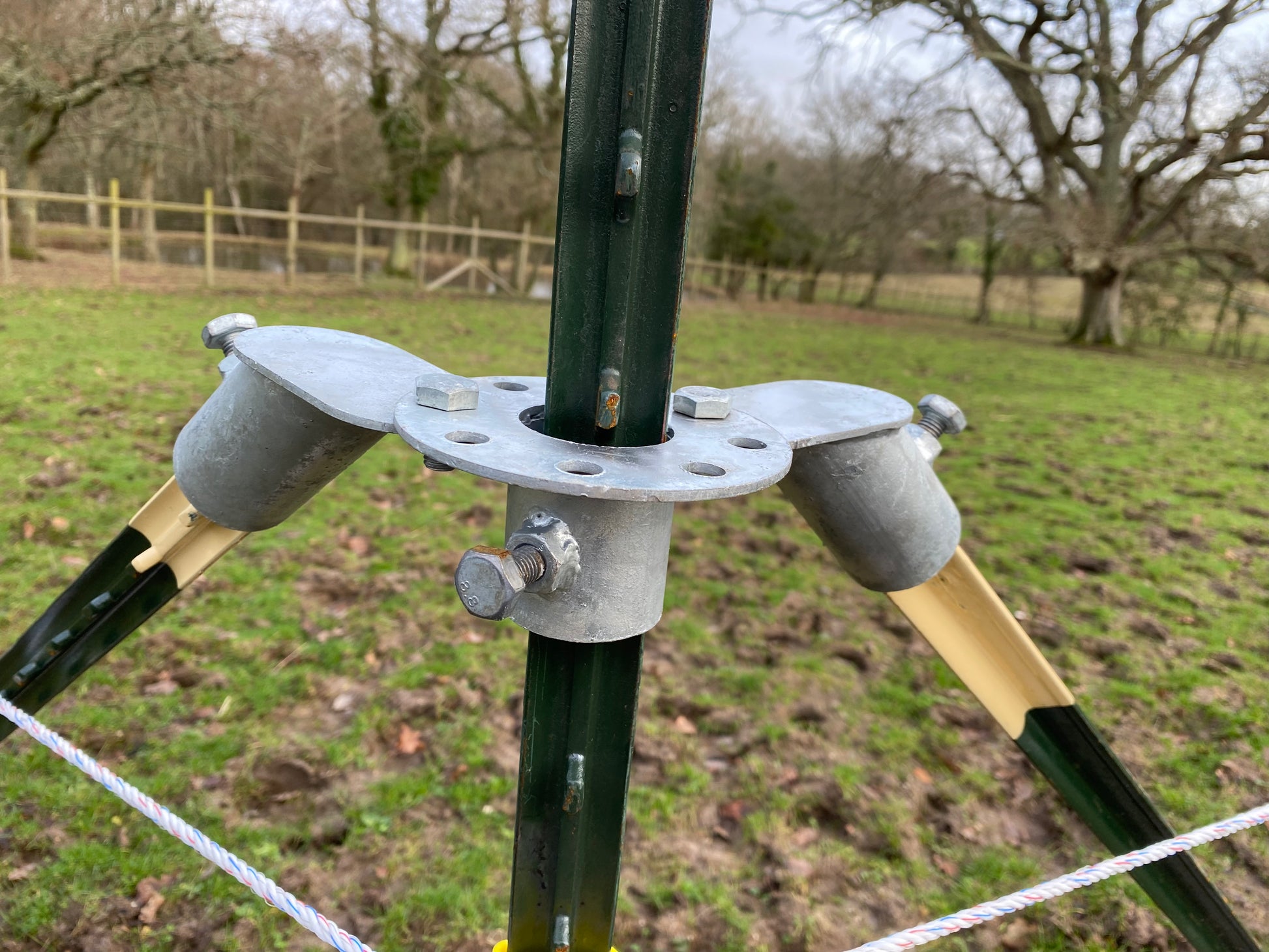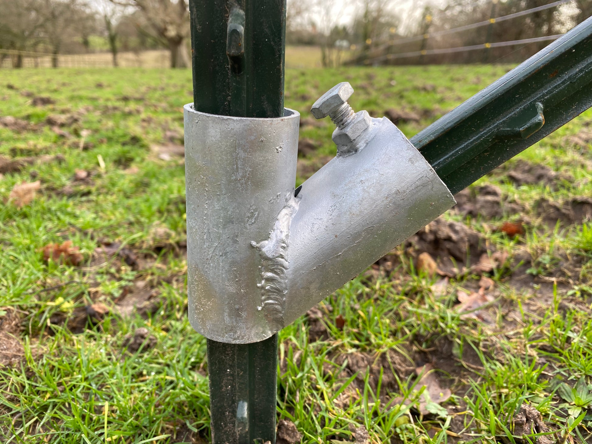 Hot dipped galvanised corner system for use with T-posts. This makes the posts very stable especially around corners.