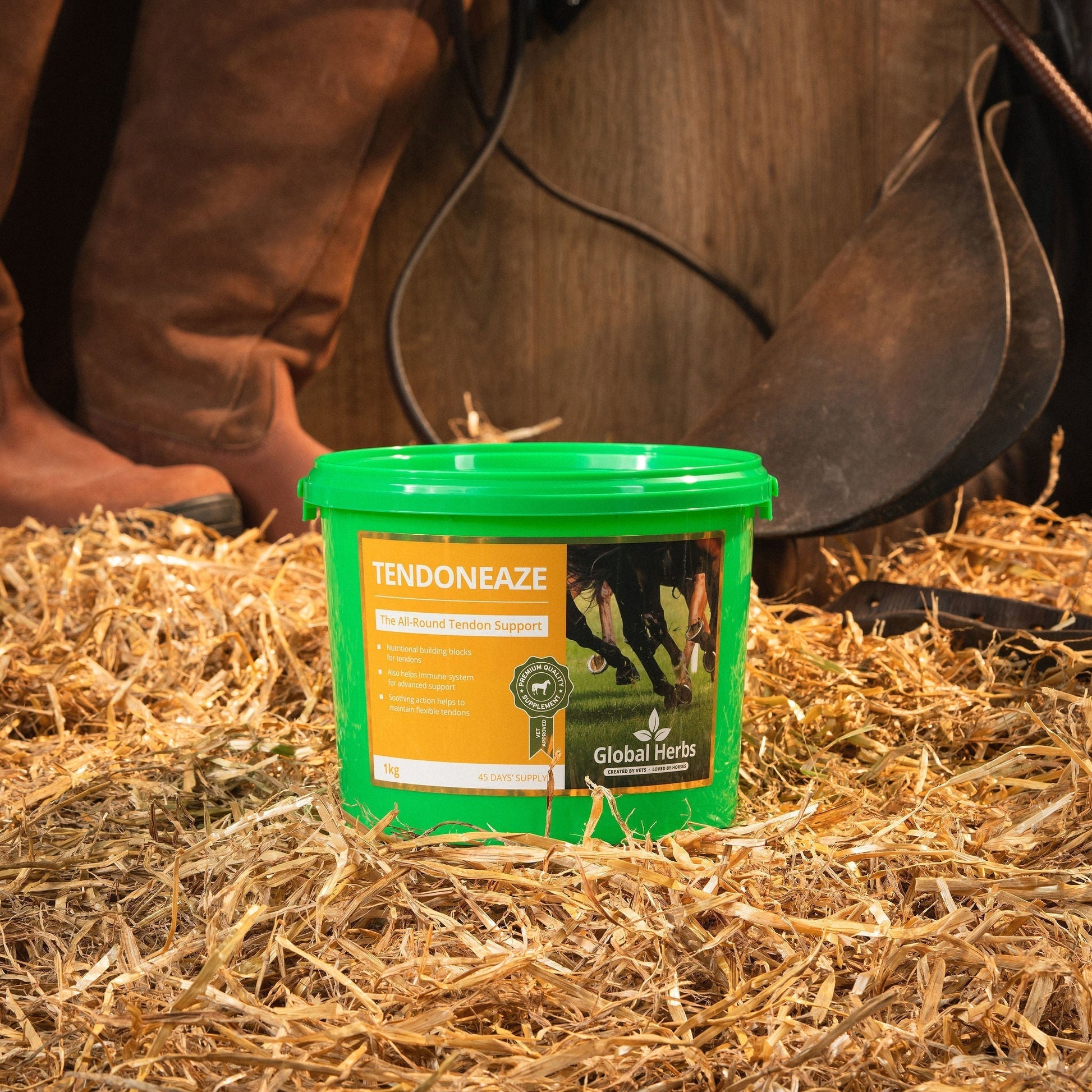 TendonEaze offers advanced nutritional support for tendons and ligaments. This premium supplement helps to maintain normal cellular division and provides the building blocks necessary for tissue development. TendonEaze helps to soothe knocks and strains and aids normal recovery. TendonEaze is ideal for maintenance and regular roadwork. Suitable for all horses and ponies. THE ALL-ROUND TENDON SUPPORT